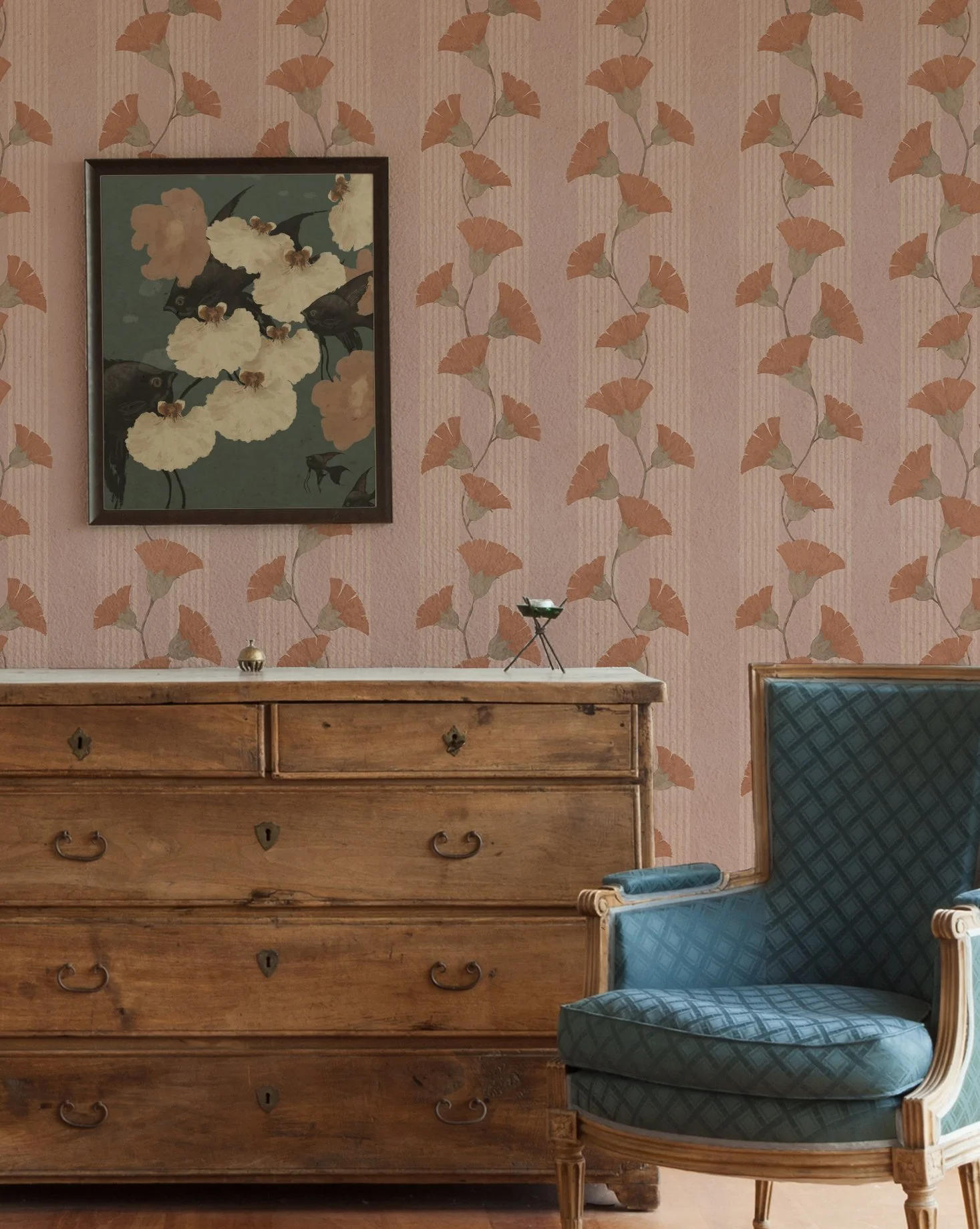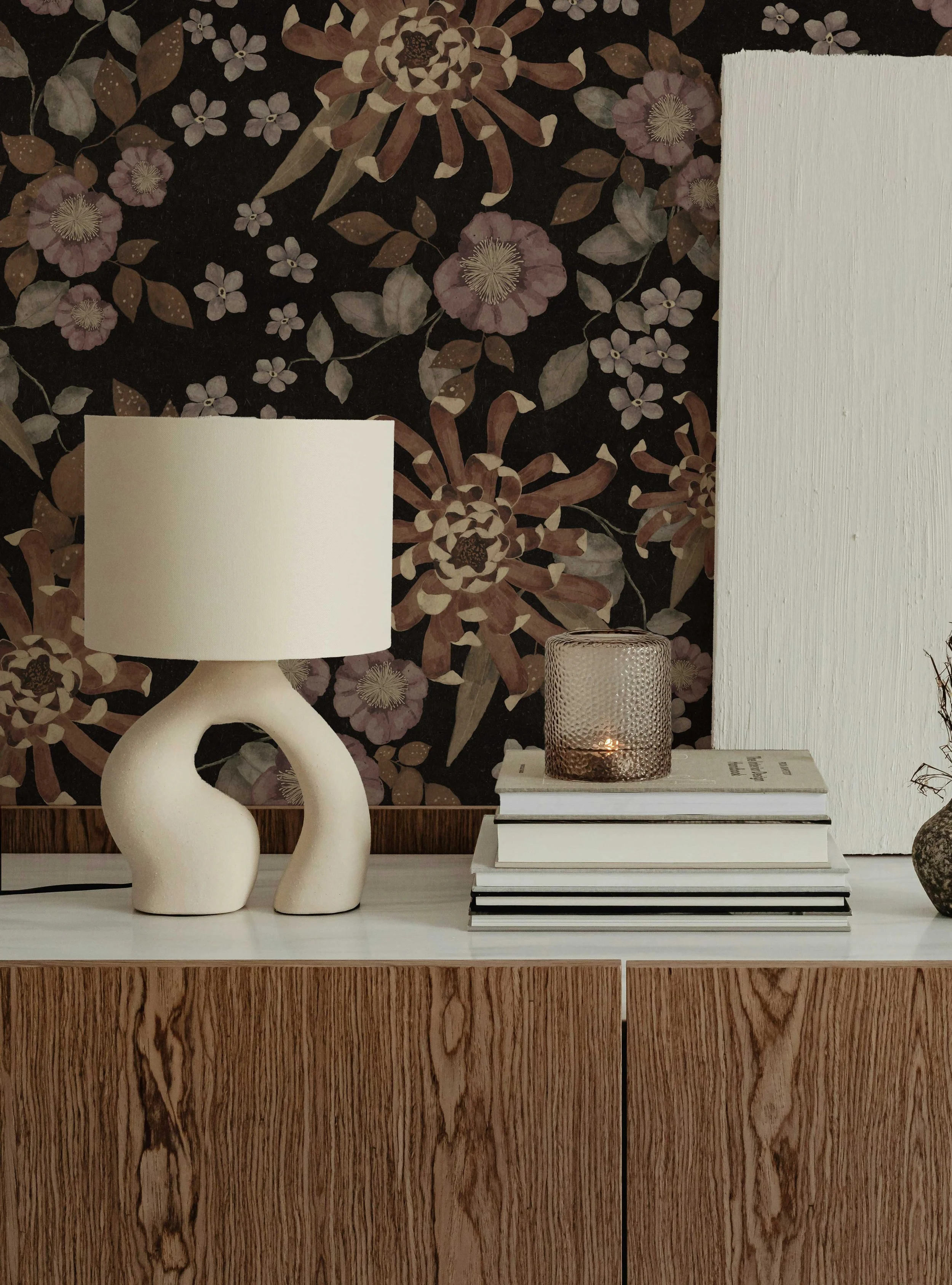 A selection of wallpaper patterns exploring soft atmosphere, nature-led forms, and quiet storytelling.
